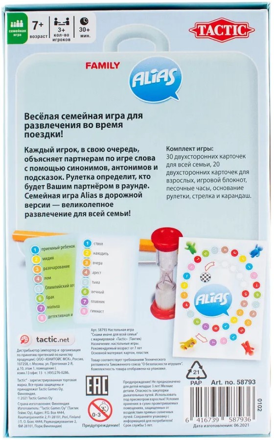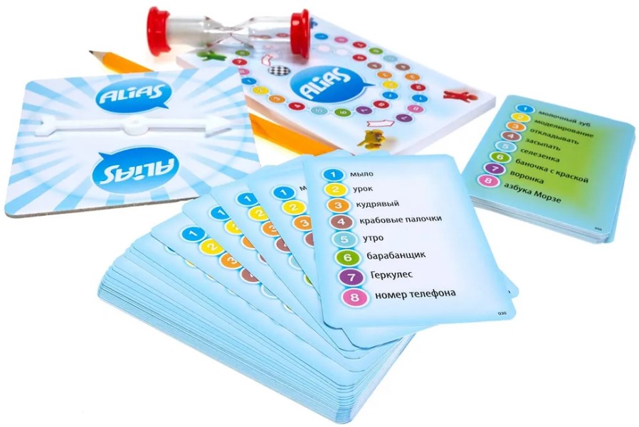 Комплектация настольной игры ALIAS Family: Скажи иначе – Для всей семьи 2. Новое издание: