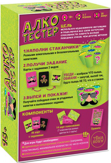 Характеристики настольной игра Алкотестер: