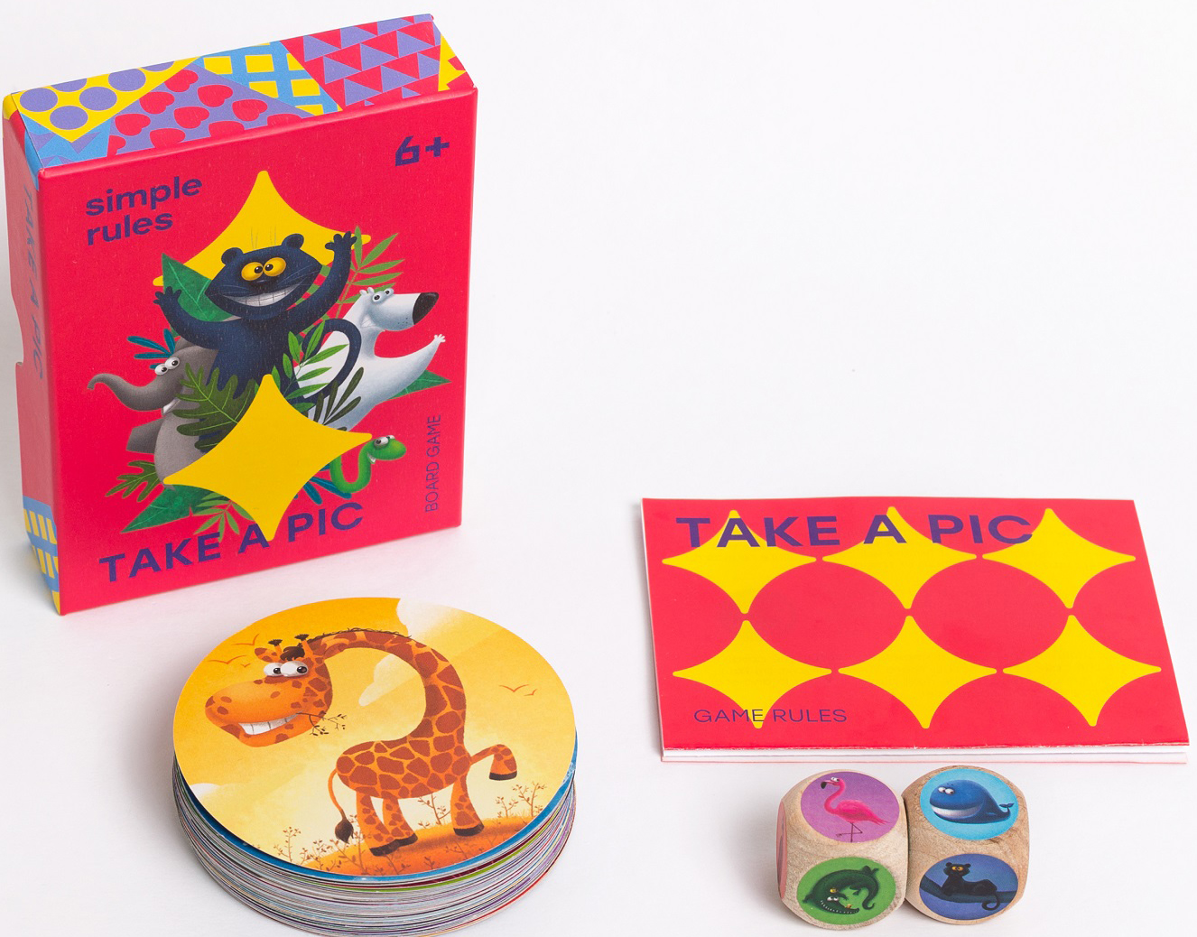 «Ай-щёлк» – это фотоохота! Супер-игра для компании на реакцию. Кидаем кубики, быстро накрываем карточки с выпавшими животными, забираем себе. Но нужно быть осторожным: пока карточка не перевернута, её могут стащить соперники!