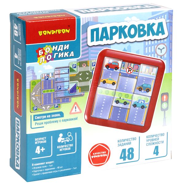 Оставить отзывПаркуемся правильно! Логическая детская игра Парковка от Bondibon – это веселая головоломка со скользящими деталями по типу пятнашек. Разместите автомобили так, чтобы закрыть все парковочные места. Настольная игра имеет множество вариантов заданий с различными уровнями сложности. Решайте задания и развивайте логическое мышление, концентрацию внимания и мелкую моторику.