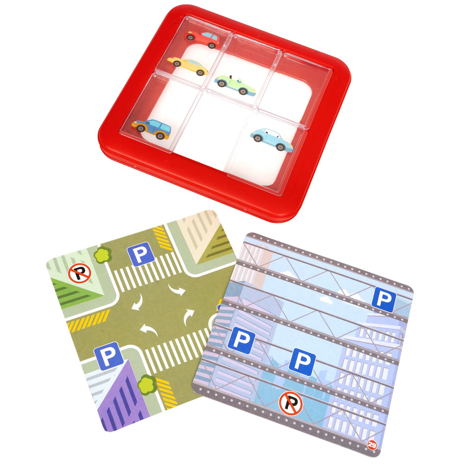 Правила простые. Выберите одну из карточек с заданием и поместите ее во внутреннее отделение игровой доски. Закройте крышкой и скользите плитками по полю, пока не припаркуете все машинки. Смотрите на знаки! Нельзя парковать там, где запрещено. Всего 48 заданий и 4 уровня сложности. Компактную головоломку удобно брать в путешествие. Ребенок занят делом, играя и развиваясь.