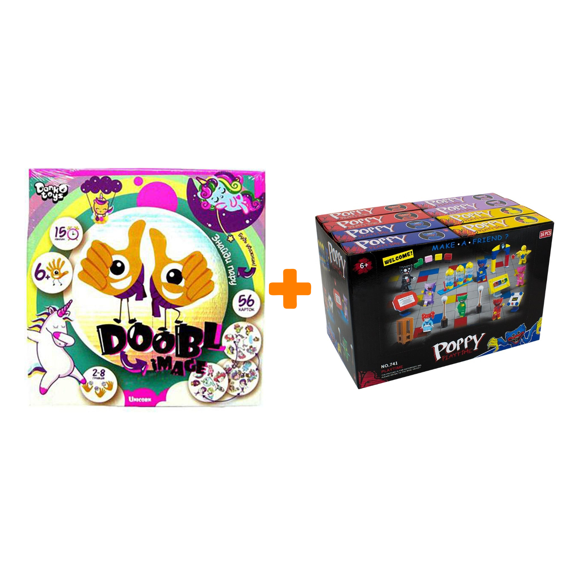 Настольная игра Двойная картинка / Doobl Image Для девочек большая + Конструктор Huggy Wuggy 33 детали Набор