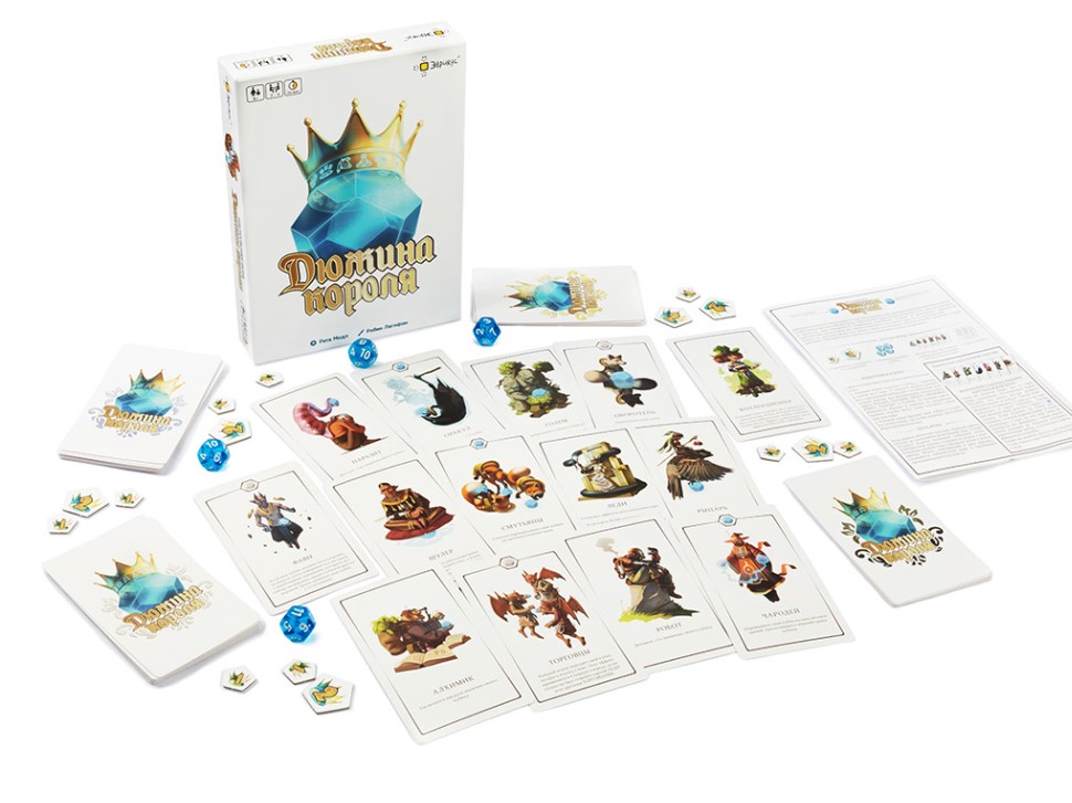 Двенадцать королевств нуждаются в вас! Используй мощь камней и силу союзников, объедините королевства под своим знаменем. Для победы вам понадобится тактика, невозмутимость и немного удачи. Помните, победителем останется только один. «Дюжина короля» – это тактическая настольная игра, в которой вам предстоит предугадывать действия соперников в борьбе за наибольшее значение вашего кубика. Каждый ход игроки разыгрывают 1 из своих карт, меняющих значение кубиков игроков на столе. Для победы в игре необходимо стать победителем в 2 раундах.