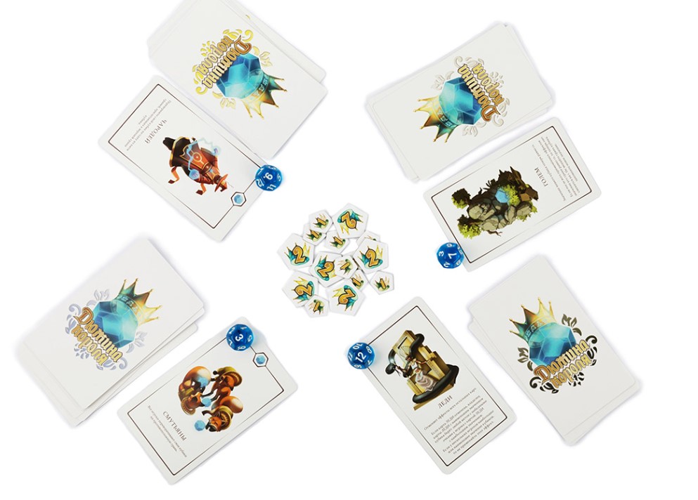 3. Игрок с наибольшим значением кубика побеждает в ходу и получает победные очки. Затем игроки вновь выбирают карту с руки и выкладывают её на стол лицом вниз.