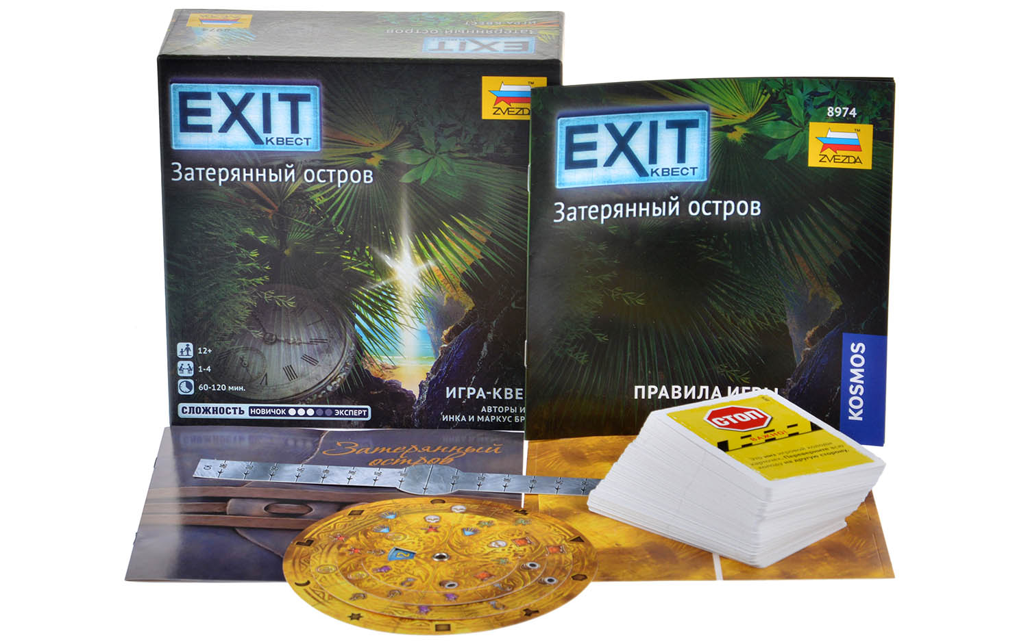 Комплектация настольной игры Exit: Затерянный остров: