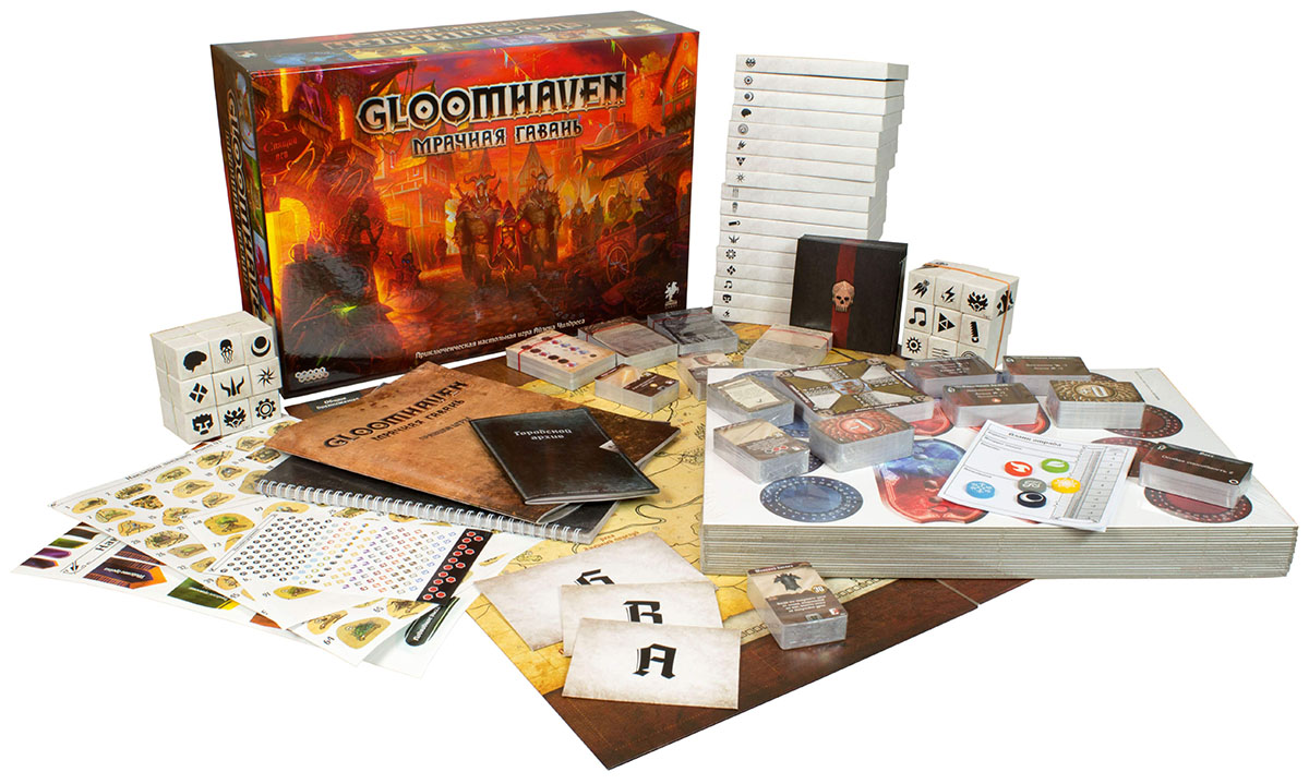 Состав настольной игры Gloomhaven: Мрачная гавань