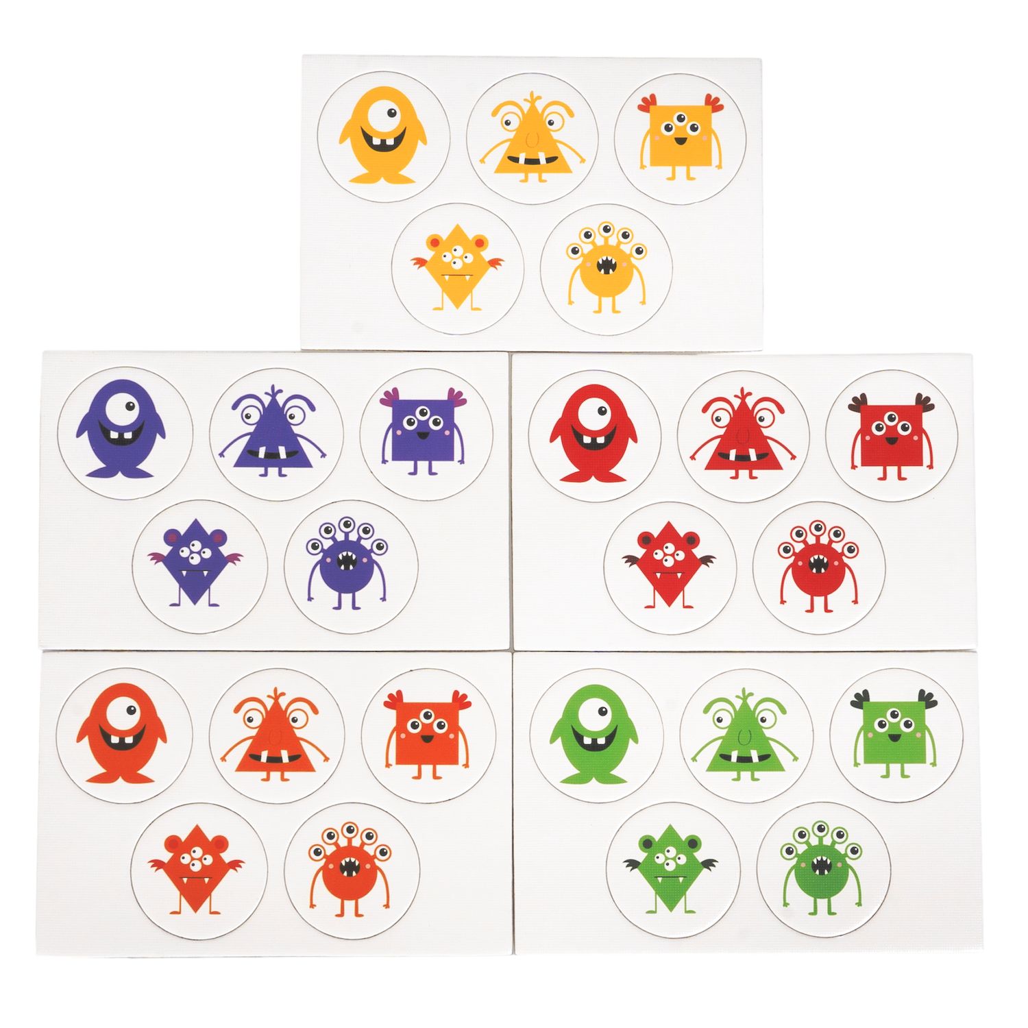 2 игры в одной! В игре 1 выложите разноцветные фигуры в заданной последовательности по вертикали. Собирайте последовательность по форме, не обращая внимание на цвет. В игре 2 используйте фишки с монстриками. Каждый монстрик имеет форму овала, треугольника, ромба, квадрата или круга. Выкладывайте их в нужной последовательности по горизонтали.