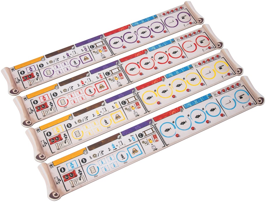 - 4 двусторонних планшета игрока (для 2 игроков и 3-4 игроков)