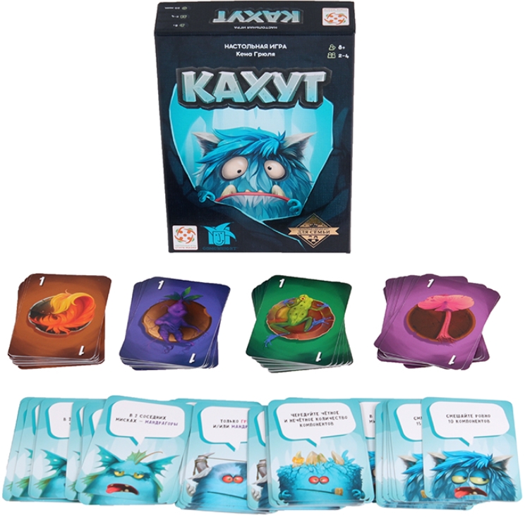 В этой кооперативной игре вам предстоит приготовить для монстров магические эликсиры. Обитатели Кахута сами подскажут, что и в каком порядке необходимо смешать. Но составлять рецепт нужно по особым правилам: меняйте за ход либо один из компонентов, либо его количество, не раскрывая при этом своих запасов другим игрокам.