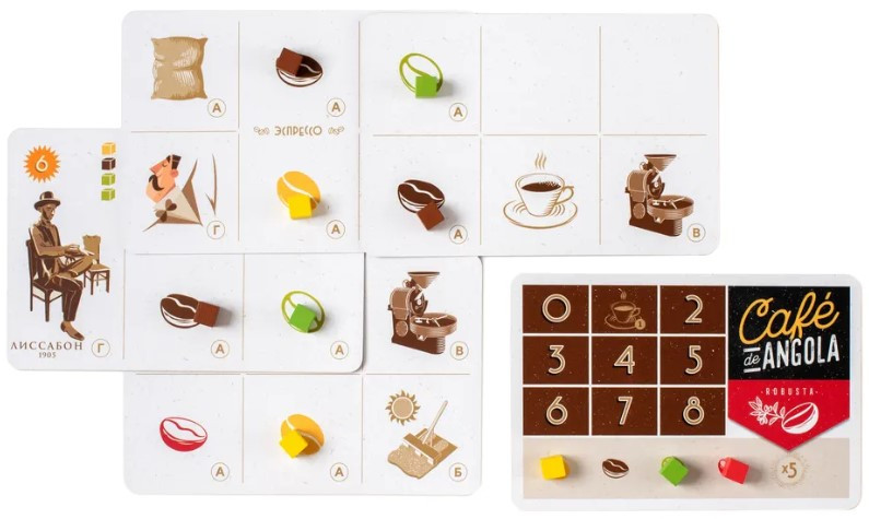 Кофе заряжает игроков энергией и желанием совершенствовать свои игровые навыки. И пусть сам кофе на всех этапах производства представляет собой всего лишь кубики разных цветов, эта игра на расчет и планирование действий просто пропитана ароматом кофейных зерен и уважением к истории и культуре Португалии. Так лаконичная и абстрактная стратегия в стильном оформлении становится приятной атмосферной игрой для идеального вечера в кругу друзей или семьи.