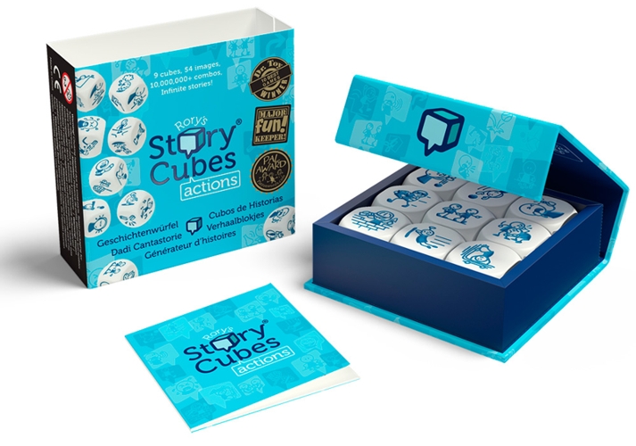 Настольная игра Кубики историй. Действия – версия, где акцент сделан на дела и виды деятельности. Рассказчик будет вынужден использовать в своей истории много глаголов, некоторые из которых очень даже забавные, так что любая игра с Кубиками Историй - это всегда весело и интересно!