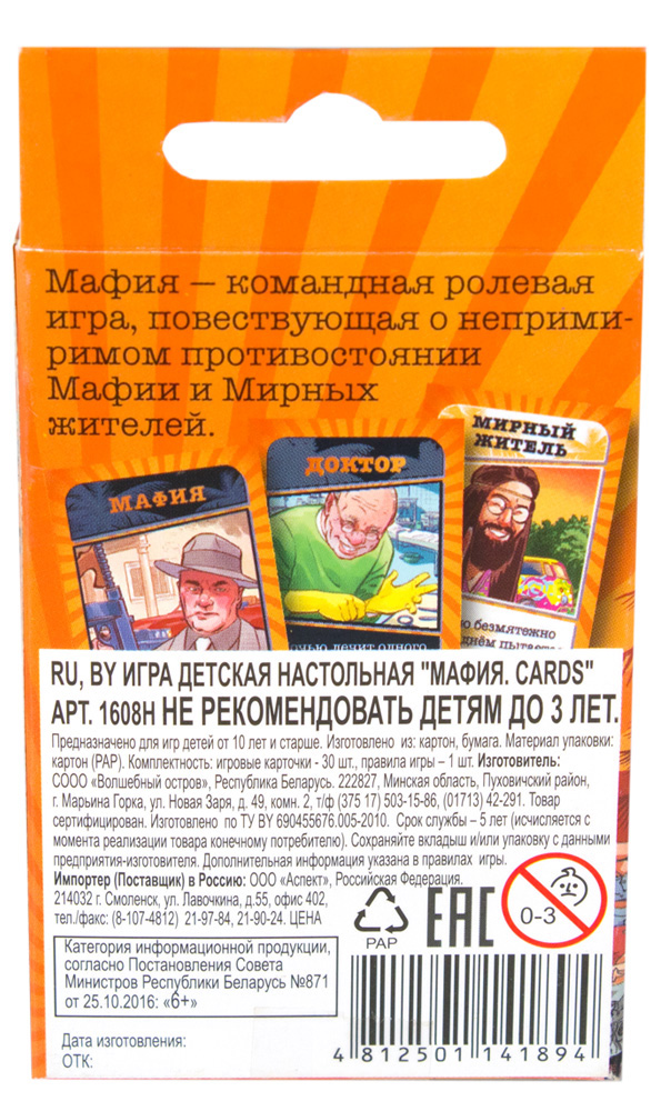 Характеристики настольной игры Мафия (детская):