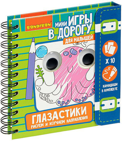 Оставить отзывМини-игра в дорогу для малышей Глазастики от ТМ Bondibon – это интерактивная раскраска с элементами игры и обучения. Малышу обязательно понравится раскрашивать странички и наблюдать за тем, как забавные персонажи, изображенные на них, оживают благодаря интерактивному элементу – движущимся глазкам!