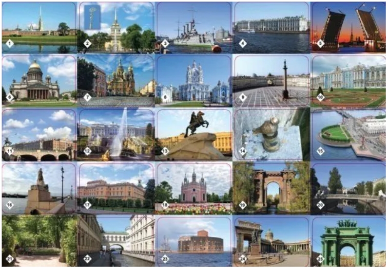Оставить отзывВ состав игры входит 2 набора карточек мемо: Москва и Санкт-Петербург. Каждый набор состоит из 50 парных карточек (по 25 пар карточек). На карточках изображены известные места и памятники городов. В состав входят 2 брошюры с описанием мест, изображенных на карточках. Рубашки карточек в комплектах разные, поэтому смешать 2 набора для одновременной игры не получится. Вы получаете 2 игры в одной коробке, что позволяет сэкономить место хранения.