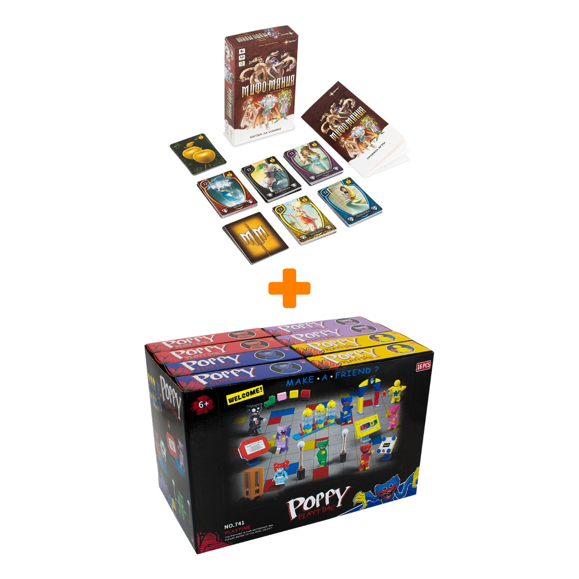 Настольная игра Мифомания + Конструктор Huggy Wuggy 33 детали Набор