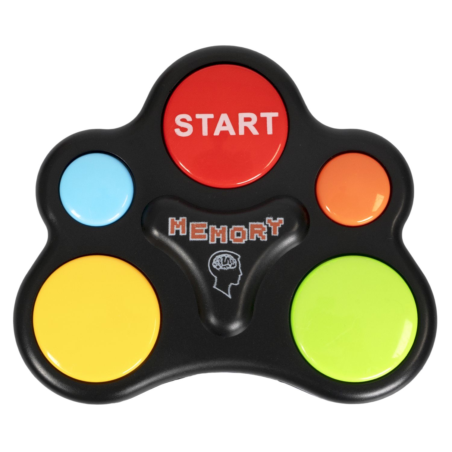 Как играть? Можно одному, а можно вместе всей семьей или с друзьями. Включите игрушку и нажмите кнопку Старт. Следите за тем, в каком порядке загораются кнопки, а затем правильно повторите последовательность загоравшихся цветов! С каждым разом последовательность световых сигналов будет увеличиваться на один дополнительный цвет. Всего 5 уровней. Развивающая головоломка Memory для детей с тысячами случайных комбинаций. Возьмите в дорогу – скучно не будет!