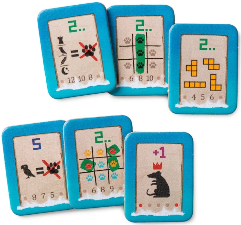 Теперь вам доступны три новых модуля – непоседливые маленькие котята, необычные, но дружелюбные чудища и жетоны событий. Котята занимают меньше места, чем большие кошки и помогают эффективнее заполнить незакрытое пространство между большими котами, чудища крепко дружат с кошками определенного цвета и будут давать дополнительные очки за соседство с ними, а с событиями каждый новый день будет означать для вас новое испытание и дополнительные способы получения победных очков. Модули можно сочетать в любом количестве, а в коробочке вас также ждут новые карты уроков. Спасаем котиков с новыми силами!