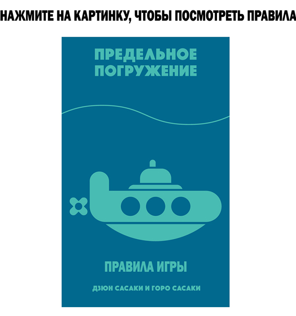 В настольной игре Предельное погружение: приключения охотников за подводными сокровищами – спускайтесь на дно океана в поисках затонувших сокровищ и попытайтесь вернуться с ними на подлодку. Группа кладоискателей решила собрать все свои сбережения и арендовать подлодку, чтобы обогатиться на сокровищах, ждущих их в морских глубинах, но денег у них хватило лишь на старую подлодку с одним общим кислородным баллоном. Если кто-то решит спуститься слишком глубоко, то они все вместе окажутся в серьезной опасности! Удастся ли им вернуться на лодку целыми и невредимыми?