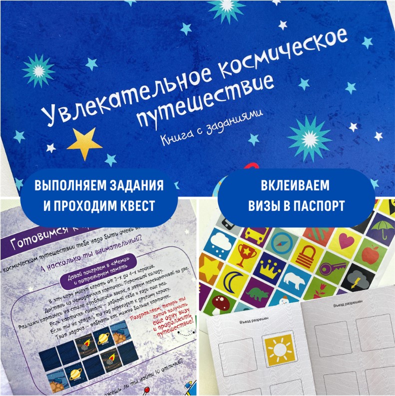 «Путешествие в космос» – это игровой набор в формате квеста. Внутри яркого чемоданчика – интересные игры, раскраски, наклейки для украшения чемодана, головоломки и творческие поделки. Перед путешествием не забудьте сделать себе талисман. За каждый пройденный этап наклеивайте визу в паспорт путешественника. Когда выполните все задания, получите приз – звезду настоящего путешественника!