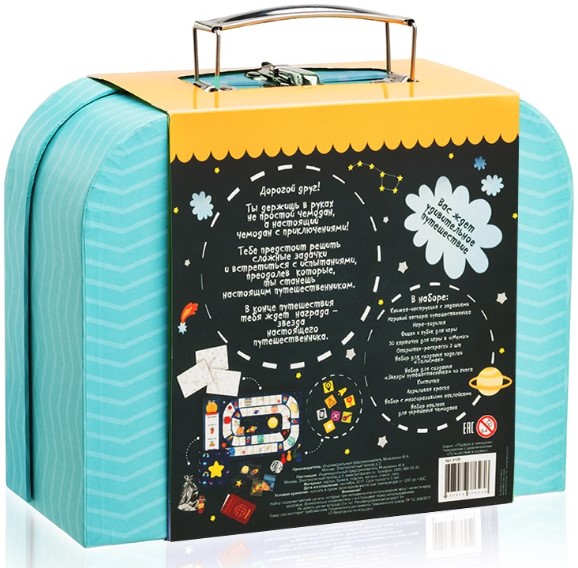 Оставить отзыв«Путешествие в космос» – это игровой набор в формате квеста. Внутри яркого чемоданчика – интересные игры, раскраски, наклейки для украшения чемодана, головоломки и творческие поделки. Перед путешествием не забудьте сделать себе талисман. За каждый пройденный этап наклеивайте визу в паспорт путешественника. Когда выполните все задания, получите приз – звезду настоящего путешественника!