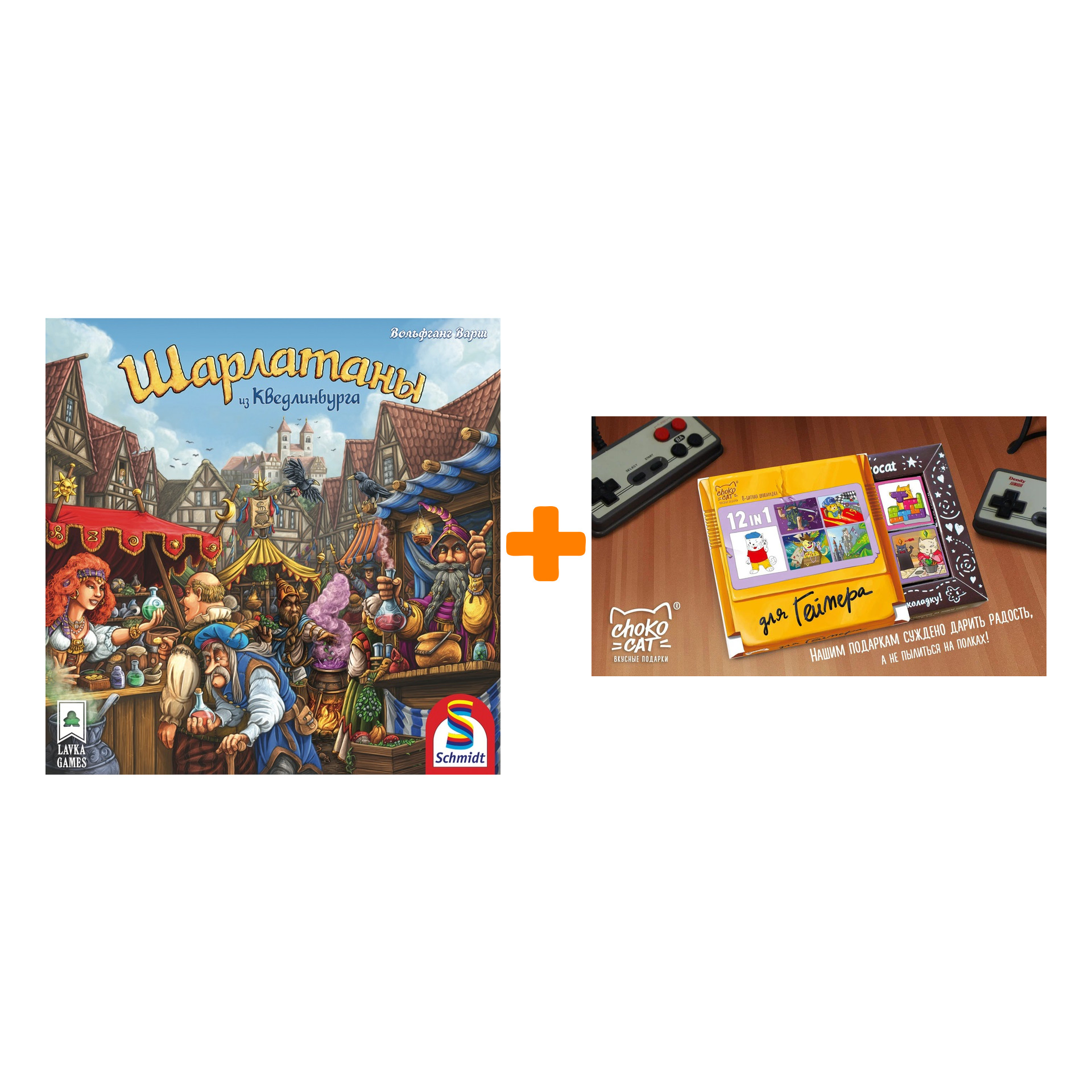 Настольная игра Шарлатаны из Кведлинбурга + Шоколад Кэт 12 Для геймера 60г Набор