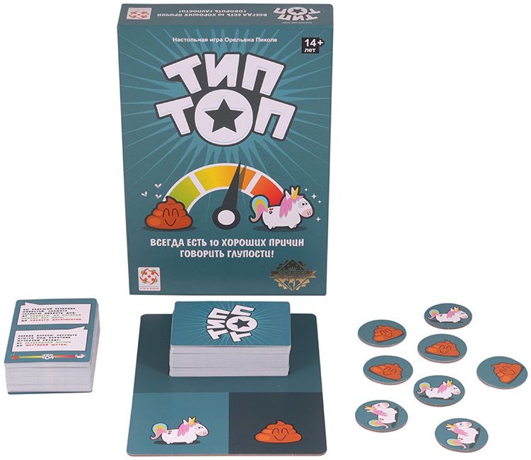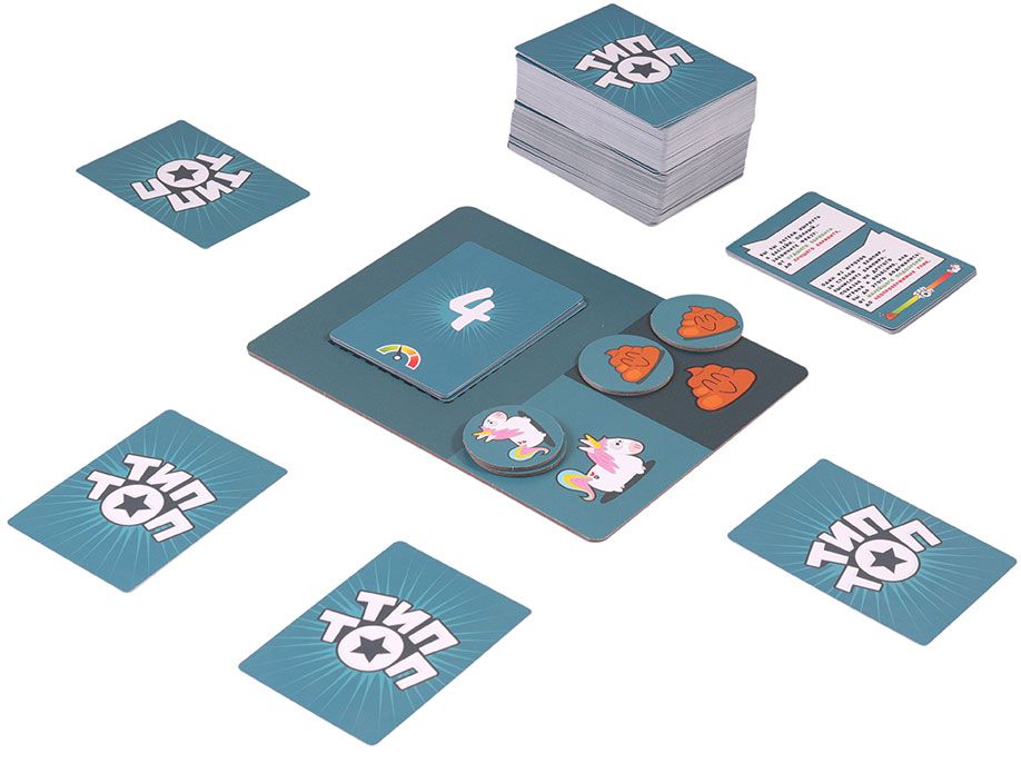 Вы со своими друзьями на одной волне? Проверьте это на деле! Тип-Топ - это кооперативная игра (все участники играют в одной команде). В каждом раунде капитан берёт верхнюю карту с темами, выбирает одну из них и зачитывает ее вслух.