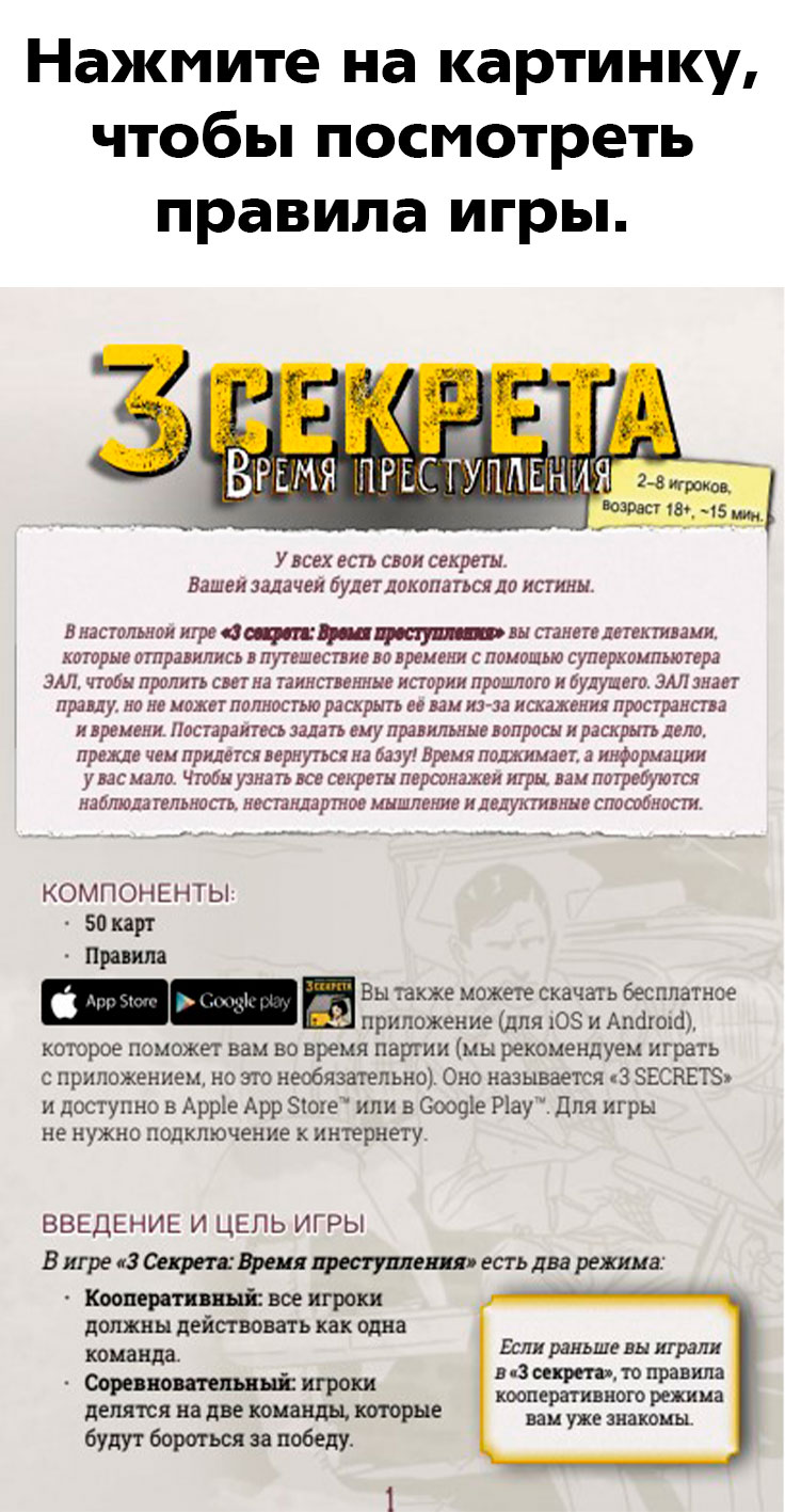 В игре «3 Секрета: Время преступления» вы станете детективами, которые отправились в путешествие во времени, чтобы пролить свет на тёмные истории прошлого и будущего. Суперкомпьютер ЭАЛ знает всю правду, но не может сообщить её открыто из-за...