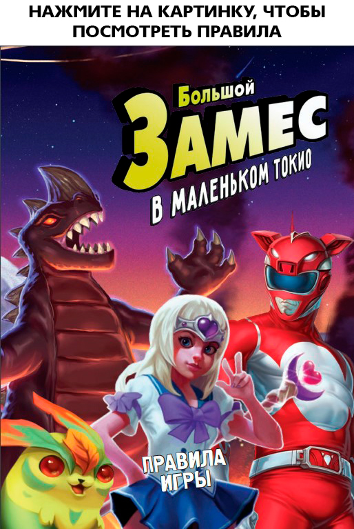 Напоминаем вам, что «Большой Замес в маленьком Токио» – это самостоятельная игра для двух игроков, но вы легко можете объединить её с базовой игрой «Замес» и любыми дополнениями, чтобы получить ещё больше интересных комбинаций и возможность играть большой компанией.
