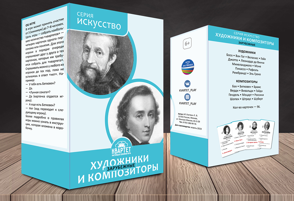 Характеристики настольной игры Зарубежные художники и композиторы:
