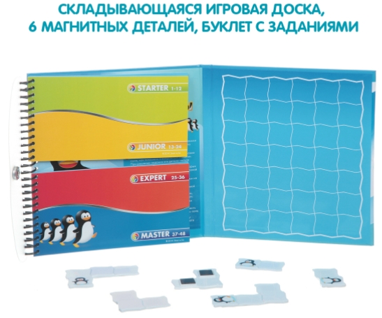 Комплектация логической магнитной игры для путешествий Smart Games: Пингвины на параде:
