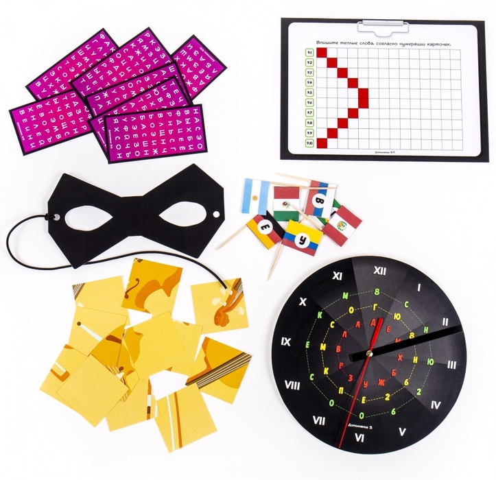 - набор предметов для расшифровки заданий (часы, карта и многое другое);