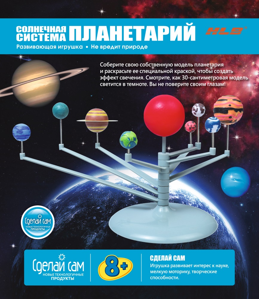 Соберите свою собственную модель планетария и раскрасьте ее специальной краской, чтобы создать эффект свечения. Смотрите, как 30-сантиметровая модель светится в темноте. Вы не поверите своим глазам!