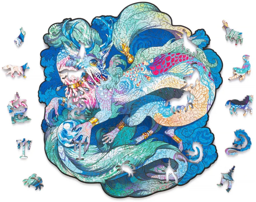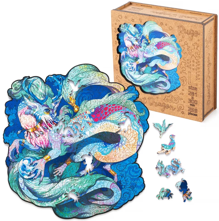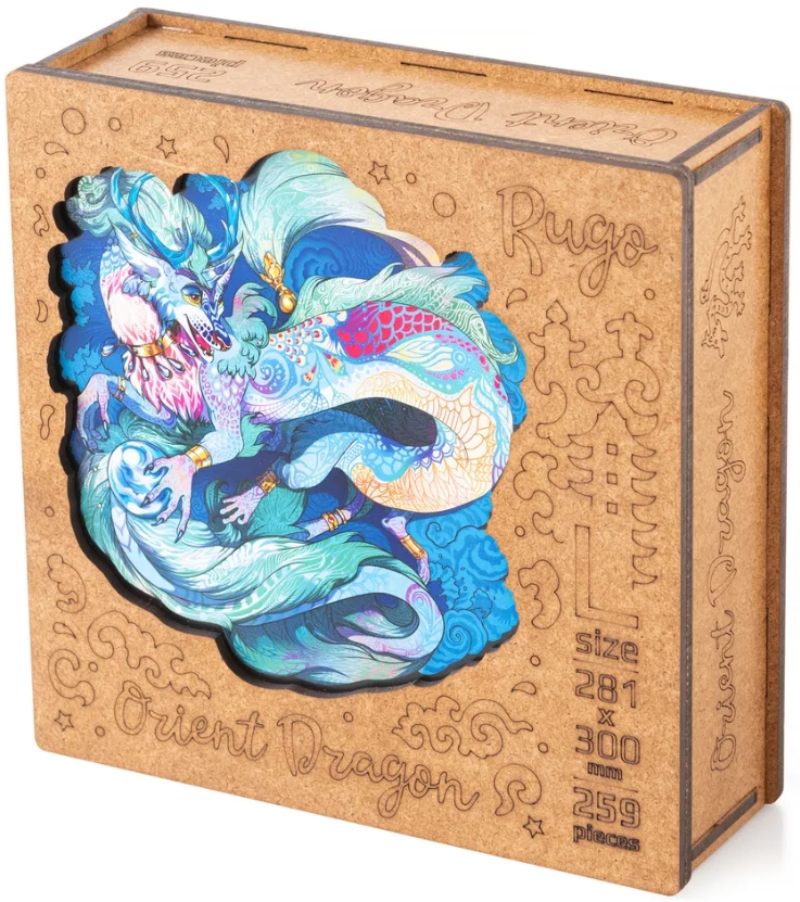 Наш Восточный дракон – эталон мудрости и справедливости. Он управляет всеми драконами, сидя на престоле Владыки Морей. Иногда, Вы сможете увидеть его парящим в небе в белоснежных облаках или плывущим на лазурных волнах океана...Желаем Вам приятного приключения во время сборки пазла!