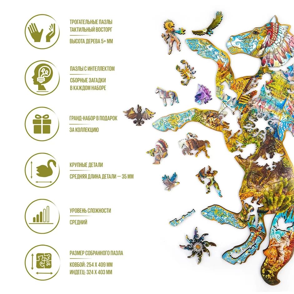 Характеристики пазла Wooden Puzzles: Мустанги. Дикий запад: