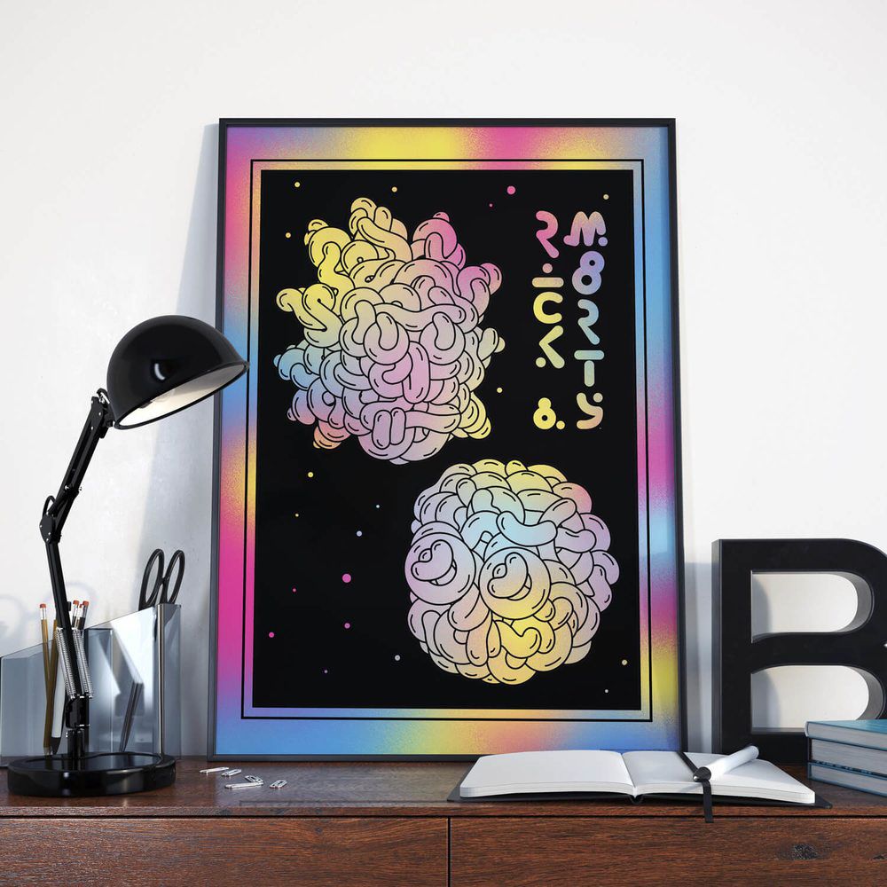 Постер напечатан на плотной постерной бумаге экологичными латексными чернилами на водной основе. Не содержит алергенов и запаха. Плотный материал держит форму и выглядит отлично на стене даже без рамки. Подойдёт к любой рамке для постера размера 50х70.