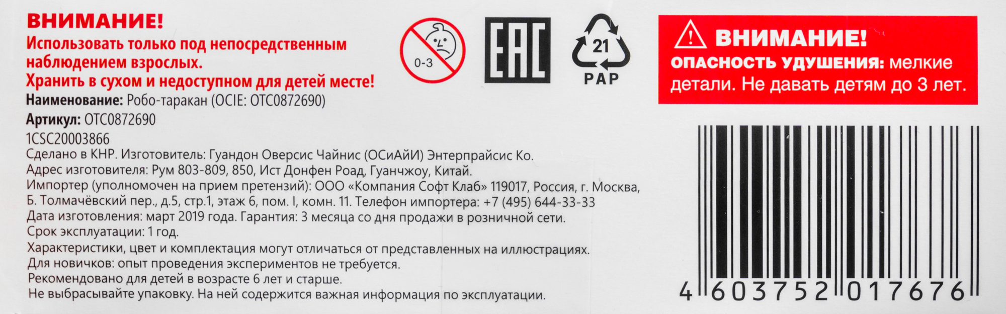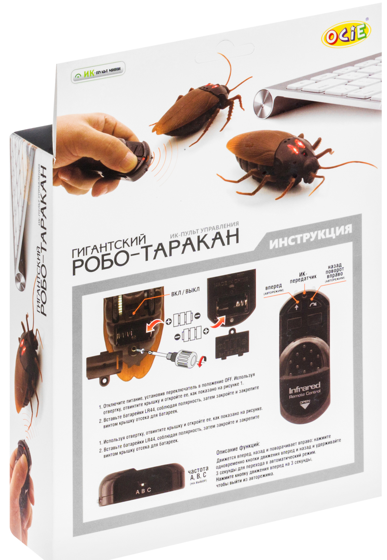 Оставить отзывРобот-таракан с пультом ДУ по ИК каналу. Питание от батареек типа LR44 1,5 В 6 шт. в комплекте