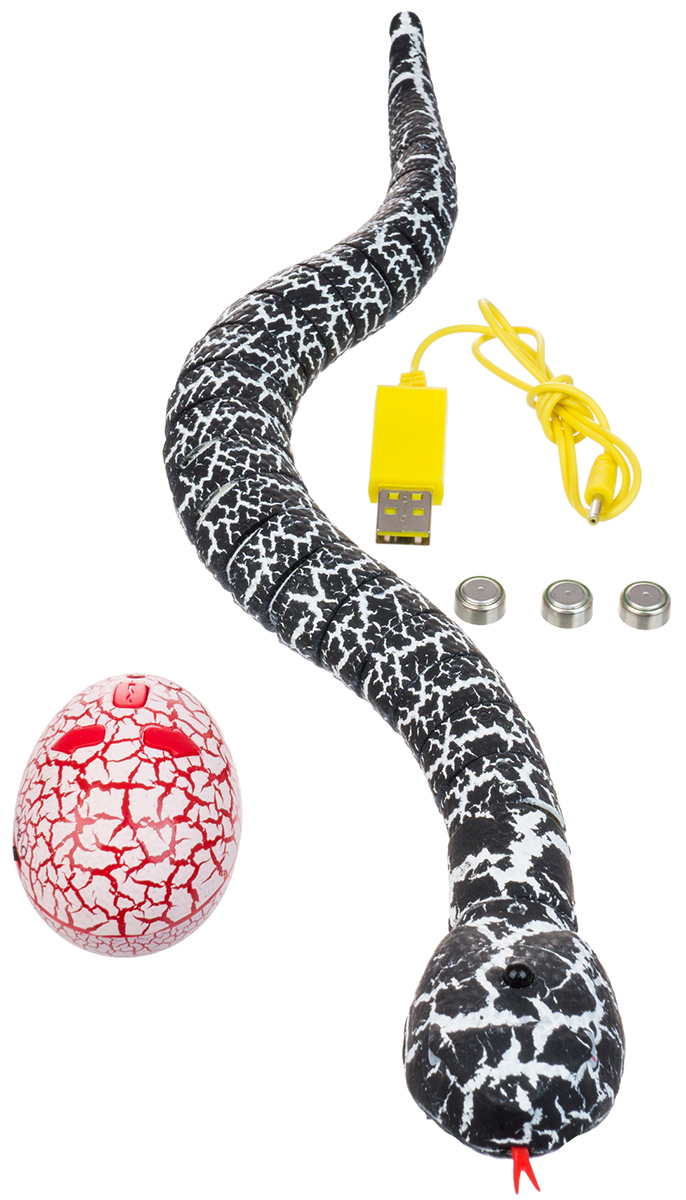 Робот-змея с пультом ДУ по частоте 2.4 Ггц. Питание пульта ДУ от батареек типа AG13, 3 шт. в комплекте. Питание змеи от встроенного аккумулятора. Зарядка по проводу USB в комплекте.