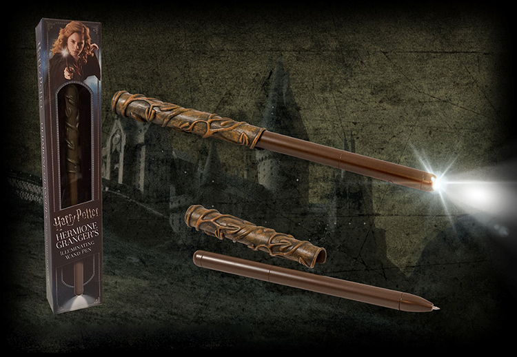 Эти волшебные палочки совмещают в себе достоинства фонарика и ручки! Яркий свет из верхней части палочки поможет вам втайне писать под одеялом. Эта ручка изготовлена в виде палочки Гермионы Грейнджер. Ручки от Noble Collection пишут синими чернилами.