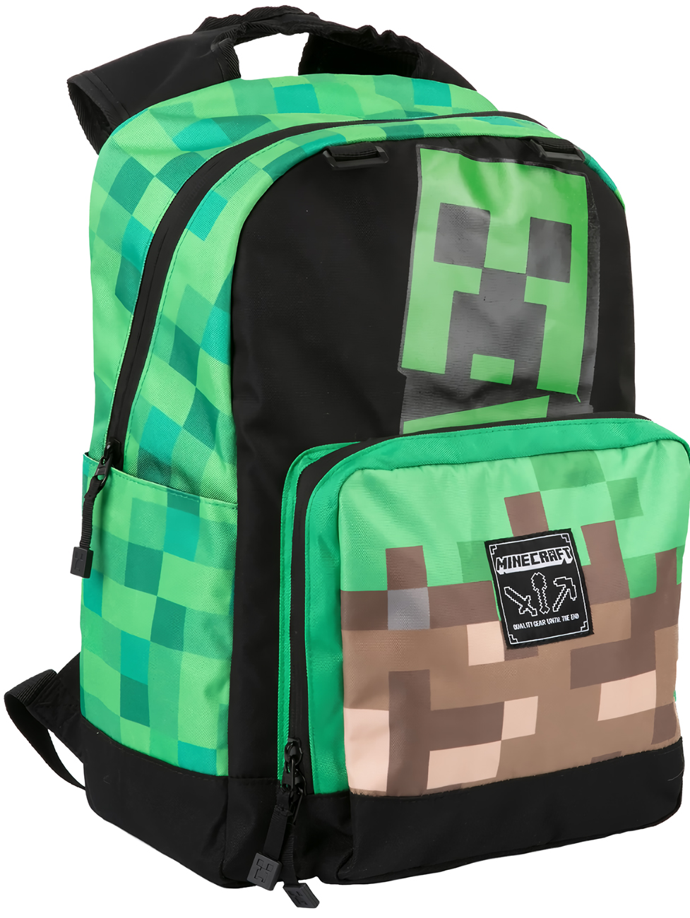 Стильный и удобный рюкзак Minecraft обязательно понравится поклонникам этой популярной игры. Аксессуар имеет объёмное отделение на молнии, подходящее для формата А4, внутри которого есть секция с уплотнёнными стенками для ноутбука.
