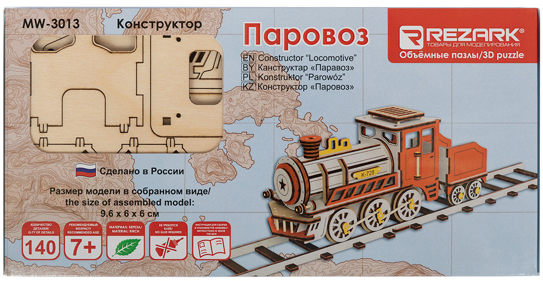 Описание деревянного 3D-пазла Паровоз (MW-3013):