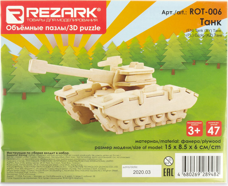 Описание деревянного 3D-пазла Танк (ROT-006):