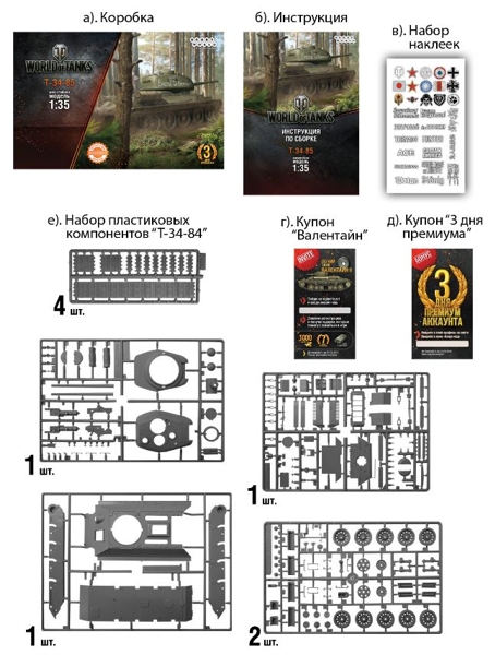 Комплектация сборной модели World of Tanks. Танк Т34-85: