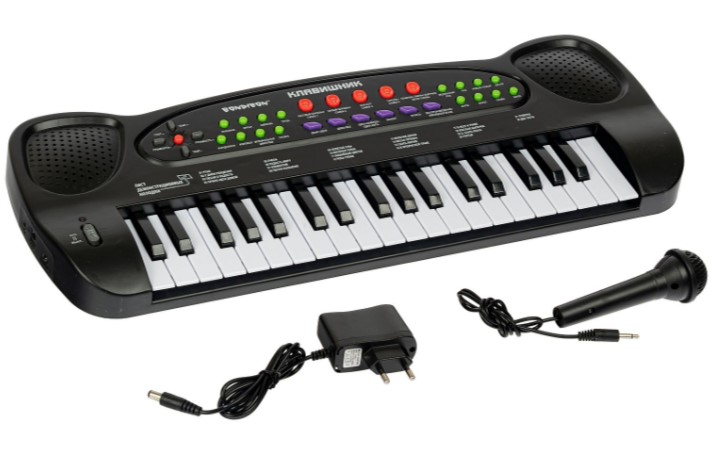 Синтезатор детский «Клавишник» с микрофоном и блоком питания ТМ Bondibon познакомит ребенка с миром музыки, позволит самостоятельно учиться играть на синтезаторе, развивая музыкальный слух, способствуя гармоничному развитию с малых лет.
