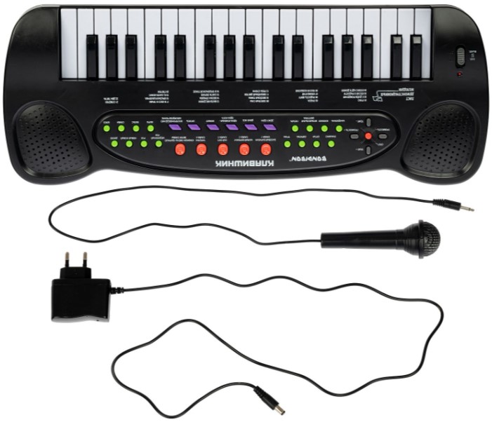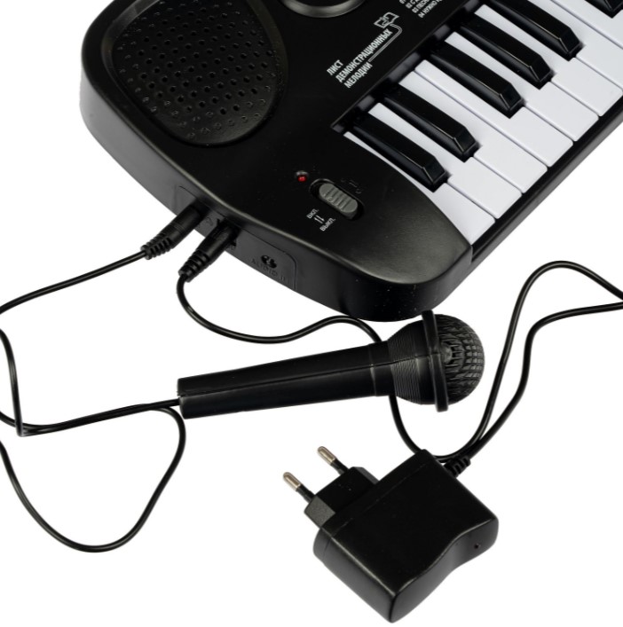 Компактный синтезатор не займет дома много места, поэтому его очень удобно использовать в качестве домашнего музыкального инструмента. Клавиатура синтезатора состоит из 37 клавиш, одна колонка обеспечивает качественный монозвук, в комплекте синтезатора микрофон, питание инструмента возможно от сети 220 В или 4 батареек АА 1,5В (в комплект не входят).