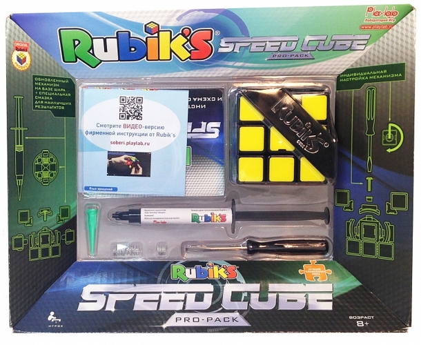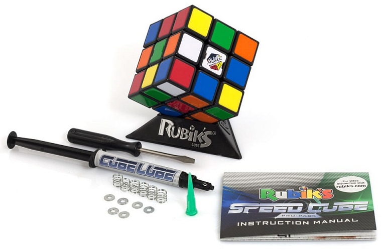 - В комплекте фирменный силиконовый гель-смазка Rubik's Lube для пластика, чтобы кубик крутился с минимальным трением.