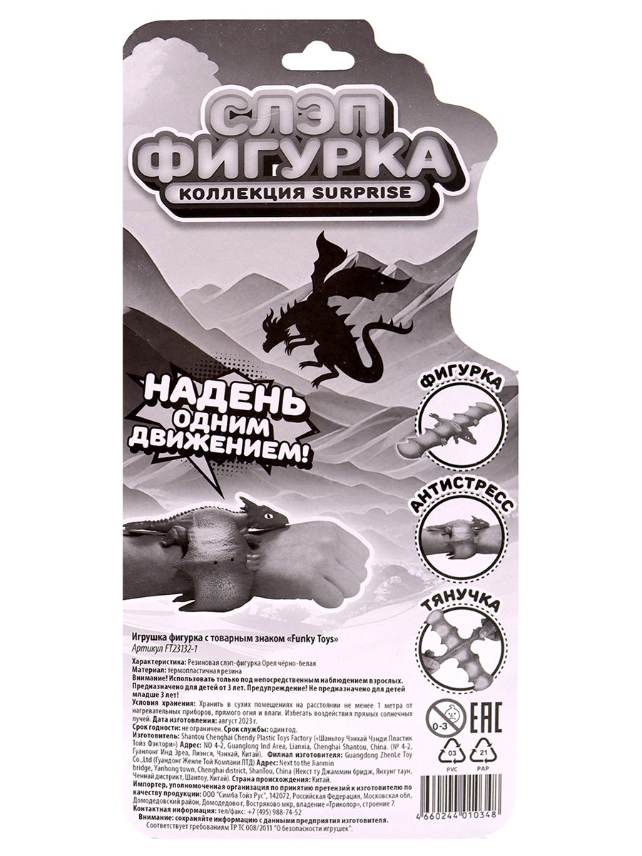 Характеристики слэп-фигурки Funky Toys: Орёл резиновая (чёрно-белая):