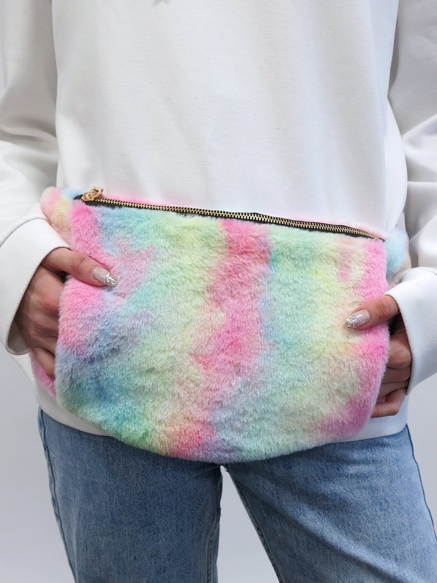 Сумка-муфта поясная плюшевая Warm Dreams (радужная)