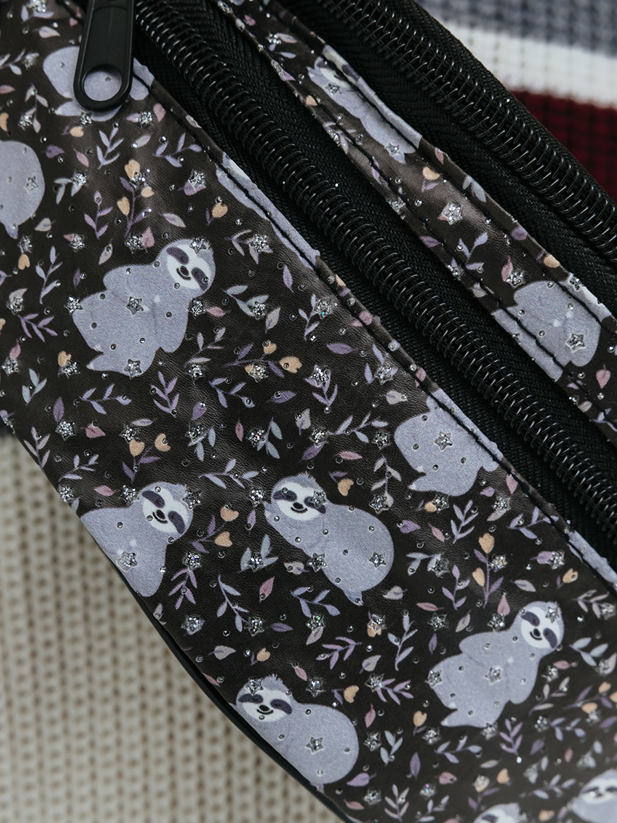 Описание сумки поясной Ленивец с блестками (чёрная):