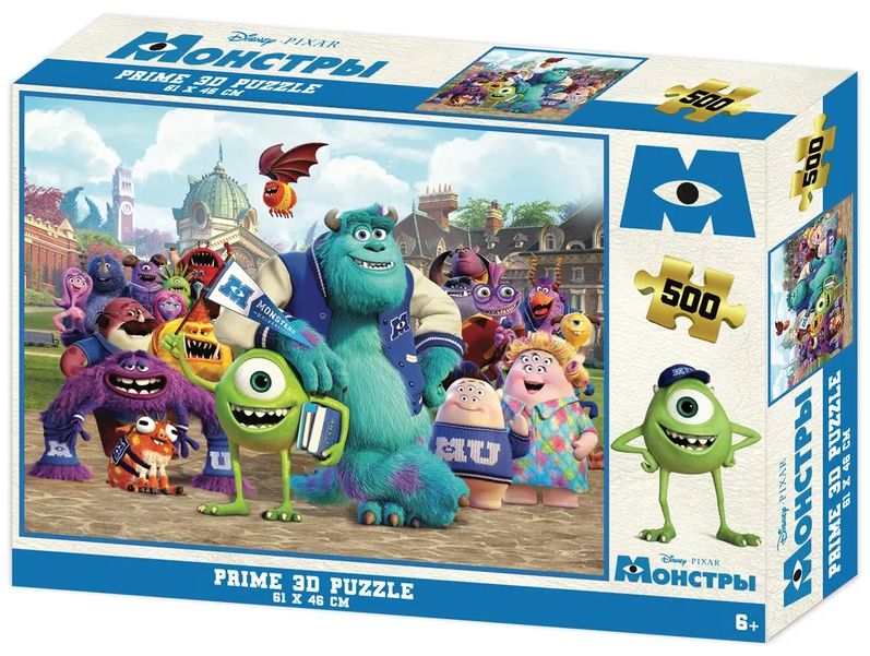 Линзовидный (лентикулярный) Super 3D Puzzle: Монстры состоит из 500 элементов с эффектом трехмерного объемного изображения любимых героев из вселенной Disney и Pixar. Любителям мультфильма «Корпорация монстров» непременно понравится данный набор!