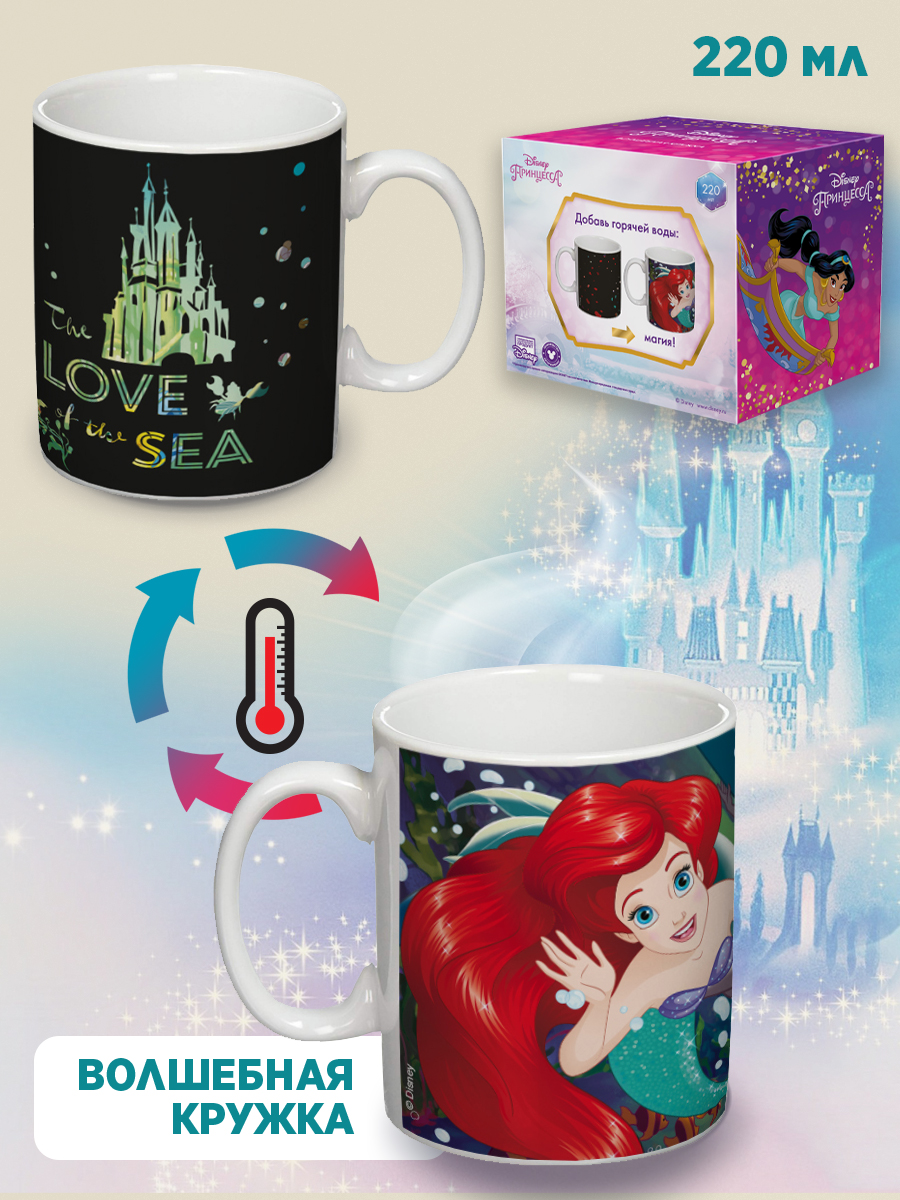 Кружка в подарочной упаковке с изображением популярной диснеевской героини Ариэль – отличный подарок ребенку! Для того, чтобы кружка поменяла цвет - просто добавьте горячей жидкости. Картинка начинает проявляться буквально через пару секунд, а в течение...